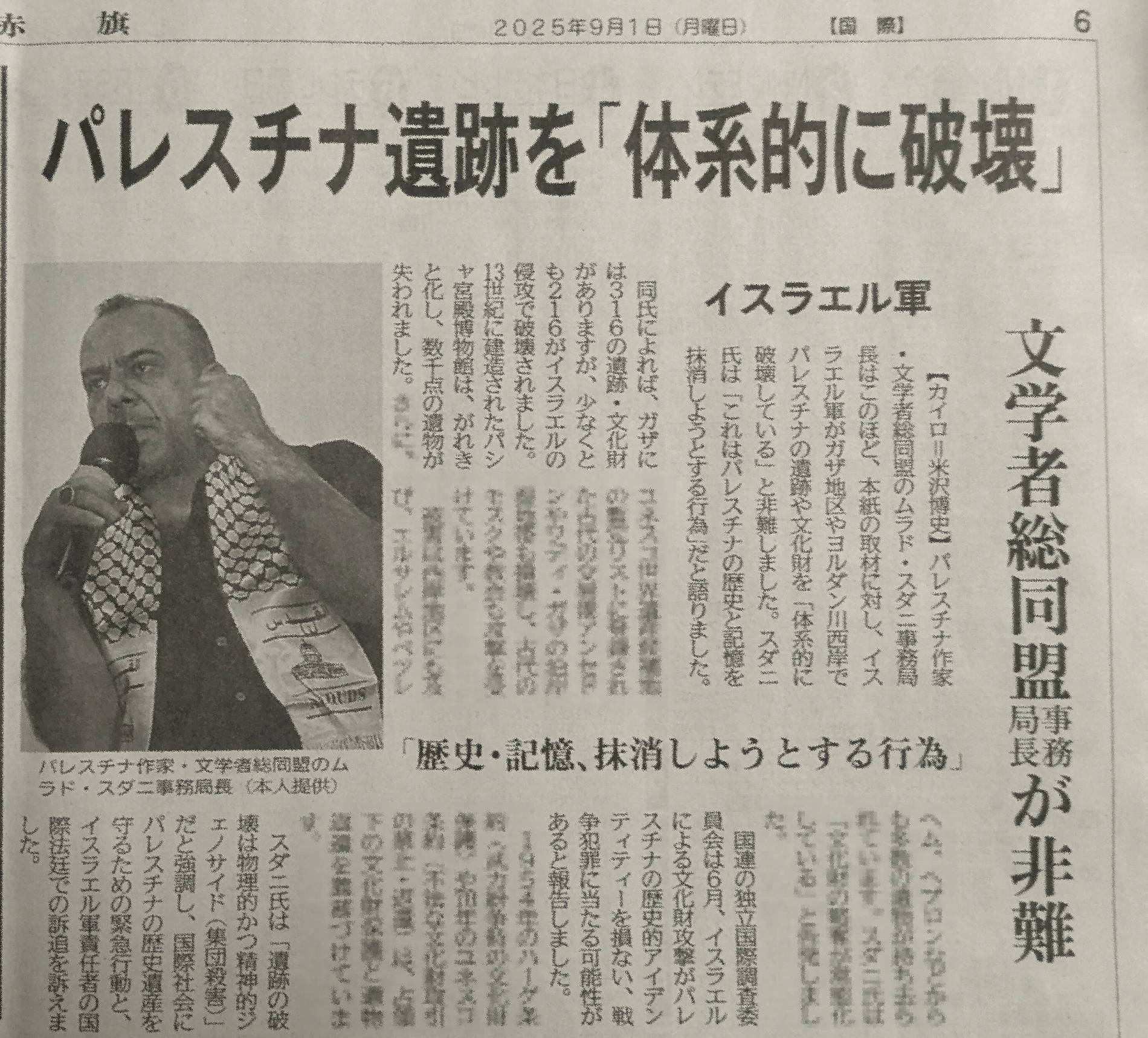 しんぶん赤旗20250901 国際 パレスチナ遺跡を「体系的に破壊」