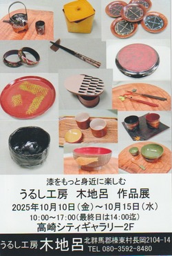 第9回 うるし工房 木地呂 作品展 高崎シティギャラリー第3展示室 10/10(金)~10/15(水) 10:00~17:00 最終日は14:00まで 女房殿も2作···