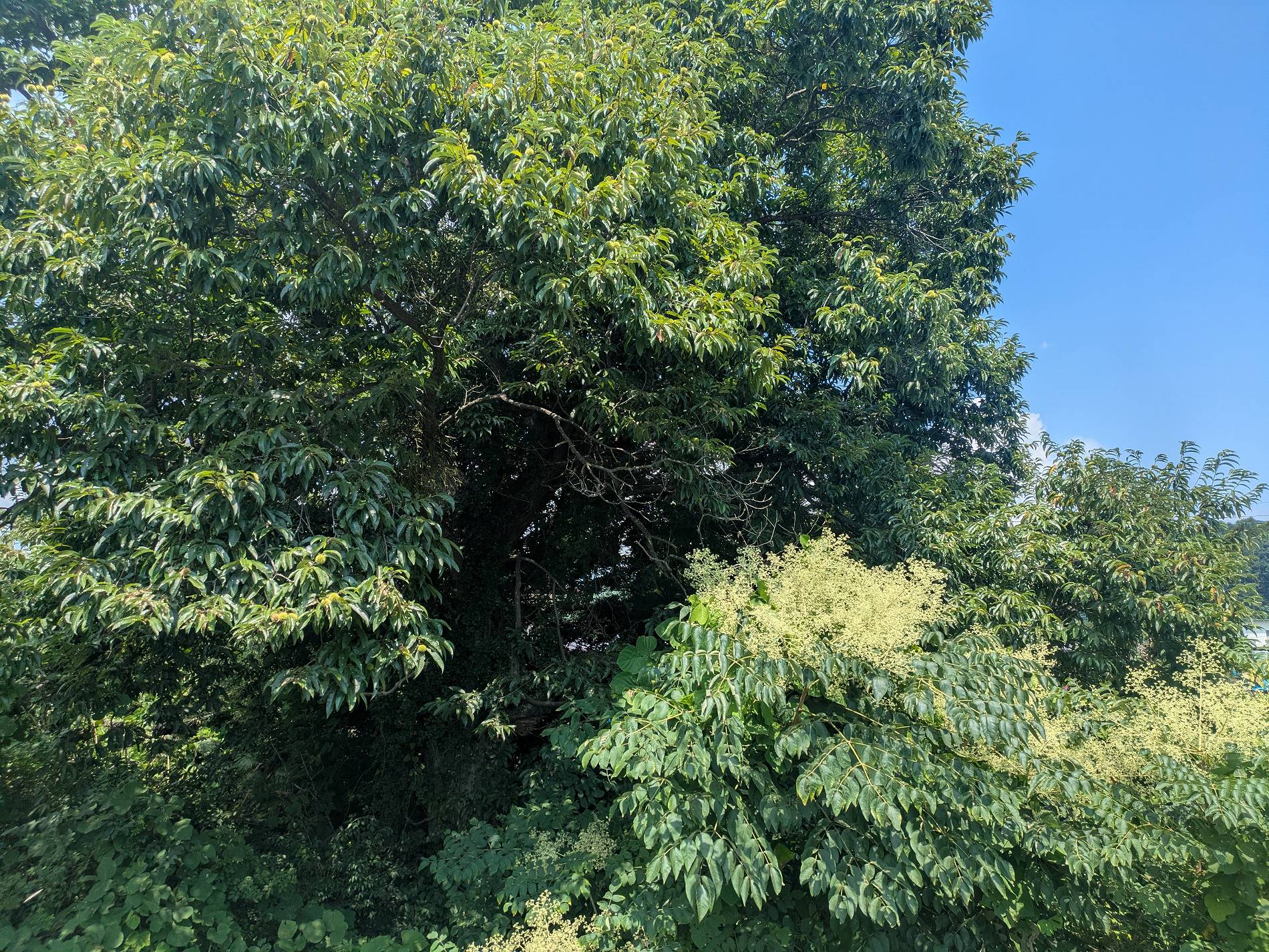 今日の道ばた タラノキの花と不思議なクリ